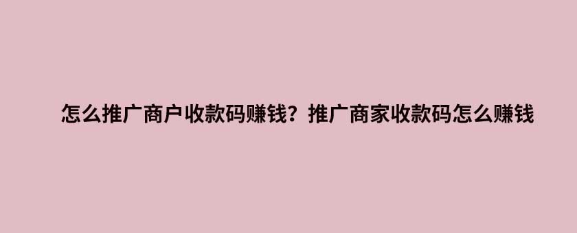 • 怎么推廣商戶收款碼賺錢?推廣商家收款碼怎么賺錢